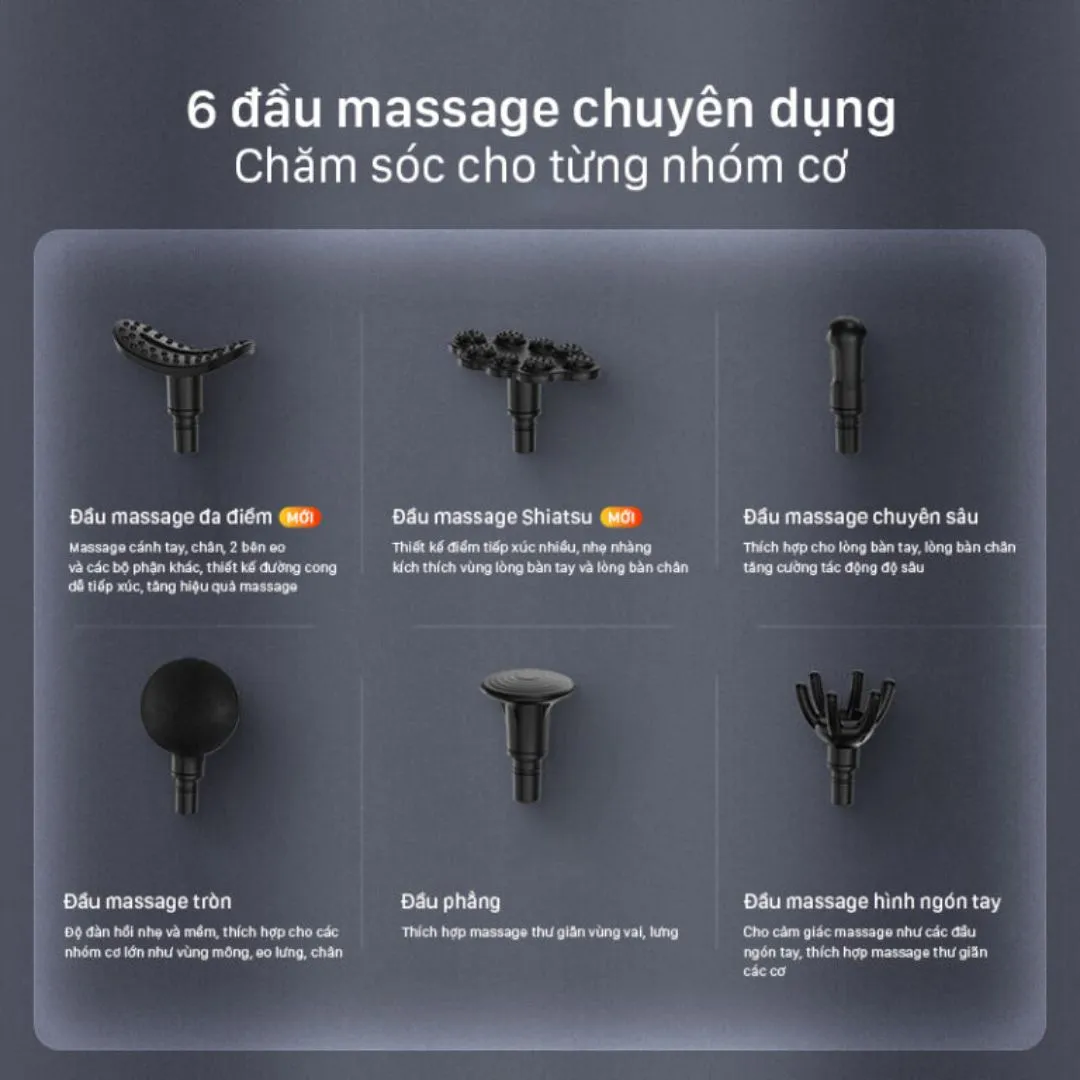 Với công suất mạnh mẽ, sản phẩm này rất lý tưởng cho những ai thường xuyên tham gia thể thao, gym, hoặc vận động viên chuyên nghiệp. Bạn có thể tận hưởng liệu pháp massage chuyên nghiệp ngay tại nhà, tiết kiệm thời gian và chi phí mà không cần đến spa, đồng thời nhớ điều chỉnh tần suất massage để đạt hiệu quả tốt nhất.
