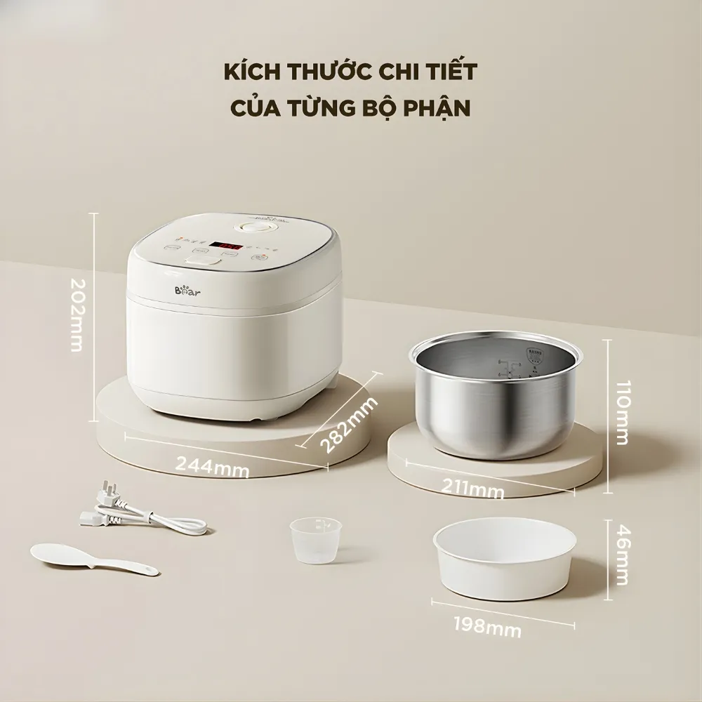 Bạn tìm kiếm một chiếc nồi cơm điện không chỉ nấu cơm ngon mà còn đảm bảo an toàn tuyệt đối cho sức khỏe gia đình? Nồi cơm điện Bear 1.2L RC-5H30O12 chính là lựa chọn hoàn hảo, đột phá với lòng nồi Inox 316L cao cấp và công nghệ nấu 6 bước mô phỏng bếp củi truyền thống, mang đến từng hạt cơm dẻo thơm, trọn vị mà không lo hóa chất độc hại.