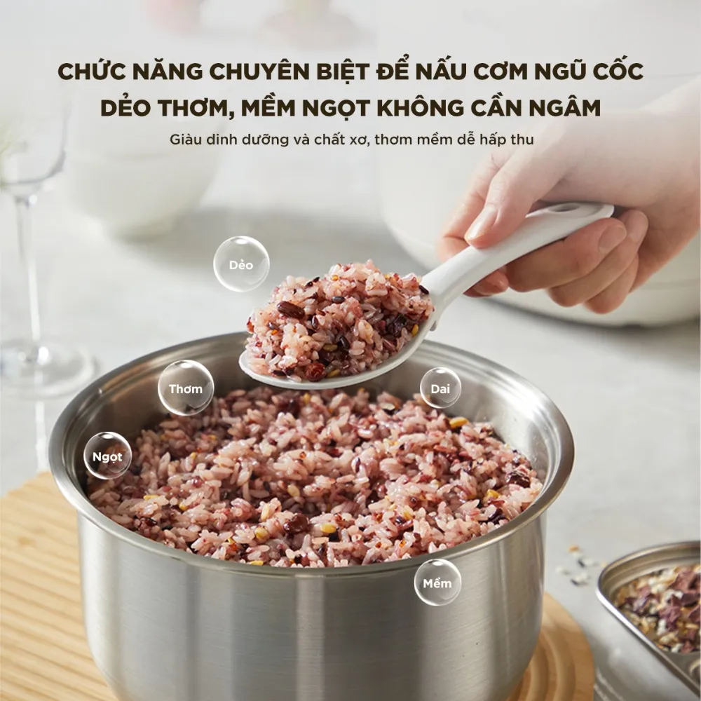 | Chế độ nấu | 8 chế độ tự động (Cơm bếp củi, Nấu nhanh, Cơm ngũ cốc, Cháo ngũ cốc, Cháo hoa, Súp, Hấp, Giữ ấm) |