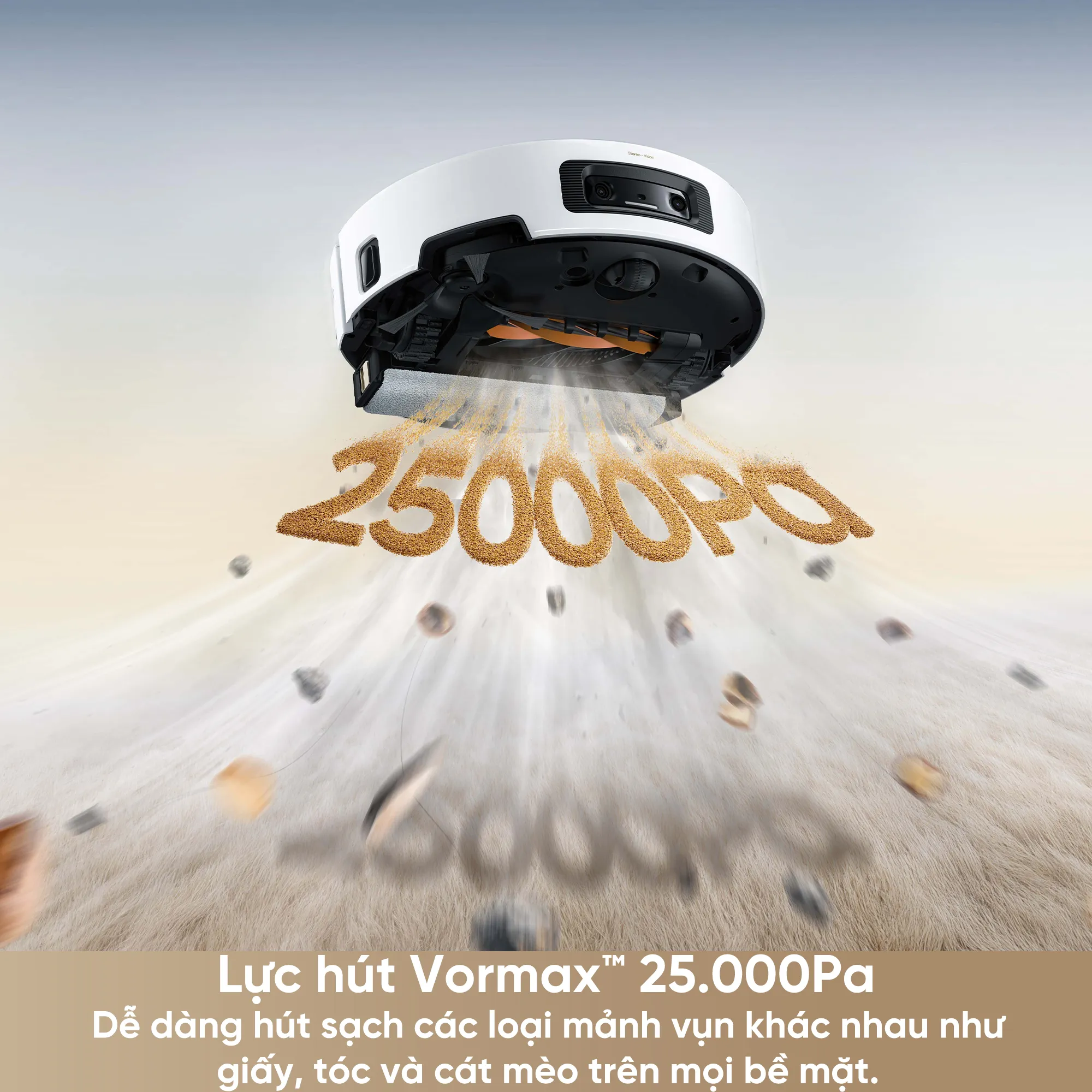 Lực hút mạnh mẽ 25.000Pa – Dễ dàng làm sạch mọi bụi bẩn