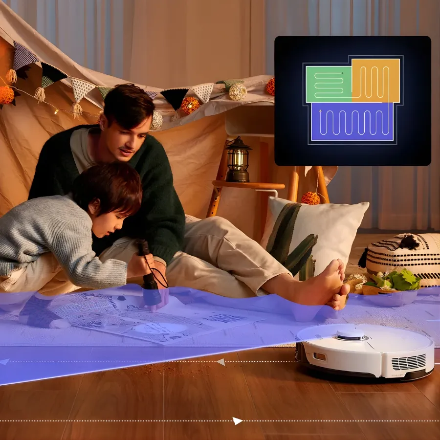 SmartPlan AI cho phép robot tự động lập kế hoạch làm sạch theo từng phòng. Robot sẽ tối ưu thứ tự dọn dẹp để tiết kiệm thời gian và năng lượng. Người dùng cũng có thể điều khiển và tùy chỉnh thông qua ứng dụng một cách dễ dàng. Trải nghiệm robot dọn nhà rảnh tay trở nên tiện lợi và chủ động hơn.