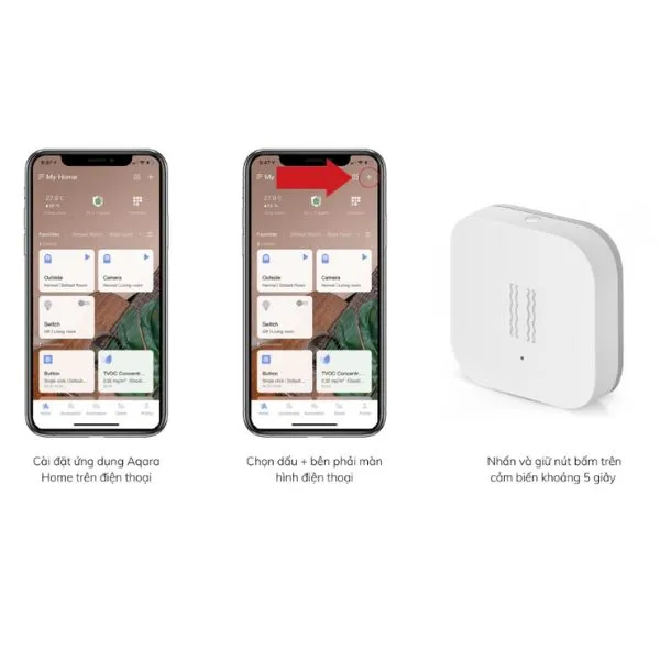 Bạn có thể kết nối cảm biến với ứng dụng Aqara Home một cách đơn giản như sau: