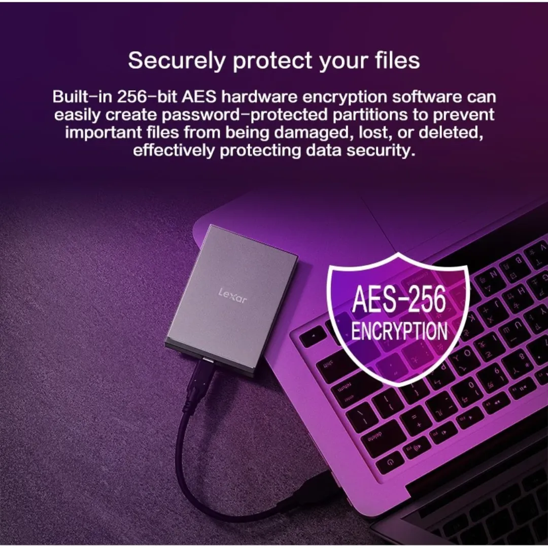 Ổ cứng di động Lexar SL210 Portable SSD coi trọng việc bảo mật dữ liệu. Nó được trang bị mã hóa 256-bit AES, giữ cho tệp của bạn được bảo vệ chống lại việc truy cập trái phép. Bạn có thể làm việc một cách tự tin, biết rằng dữ liệu nhạy cảm của bạn được bảo mật và an toàn.[/accordion-item]