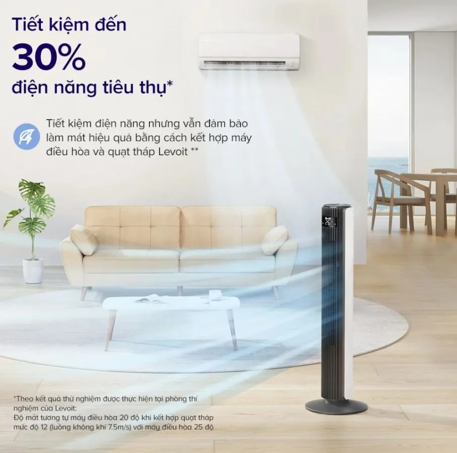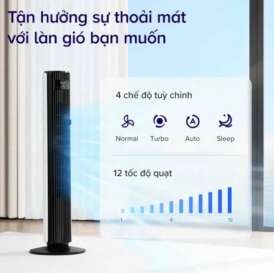 Levoit 42 inch, sản phẩm này không chỉ đơn thuần là một quạt tháp Levoit, mà còn là biểu tượng của công nghệ làm mát hiện đại – quạt thông minh, quạt cảm biến – giúp bạn tận hưởng không khí mát mẻ thoải mái mà vẫn tiết kiệm điện, vận hành yên tĩnh.
