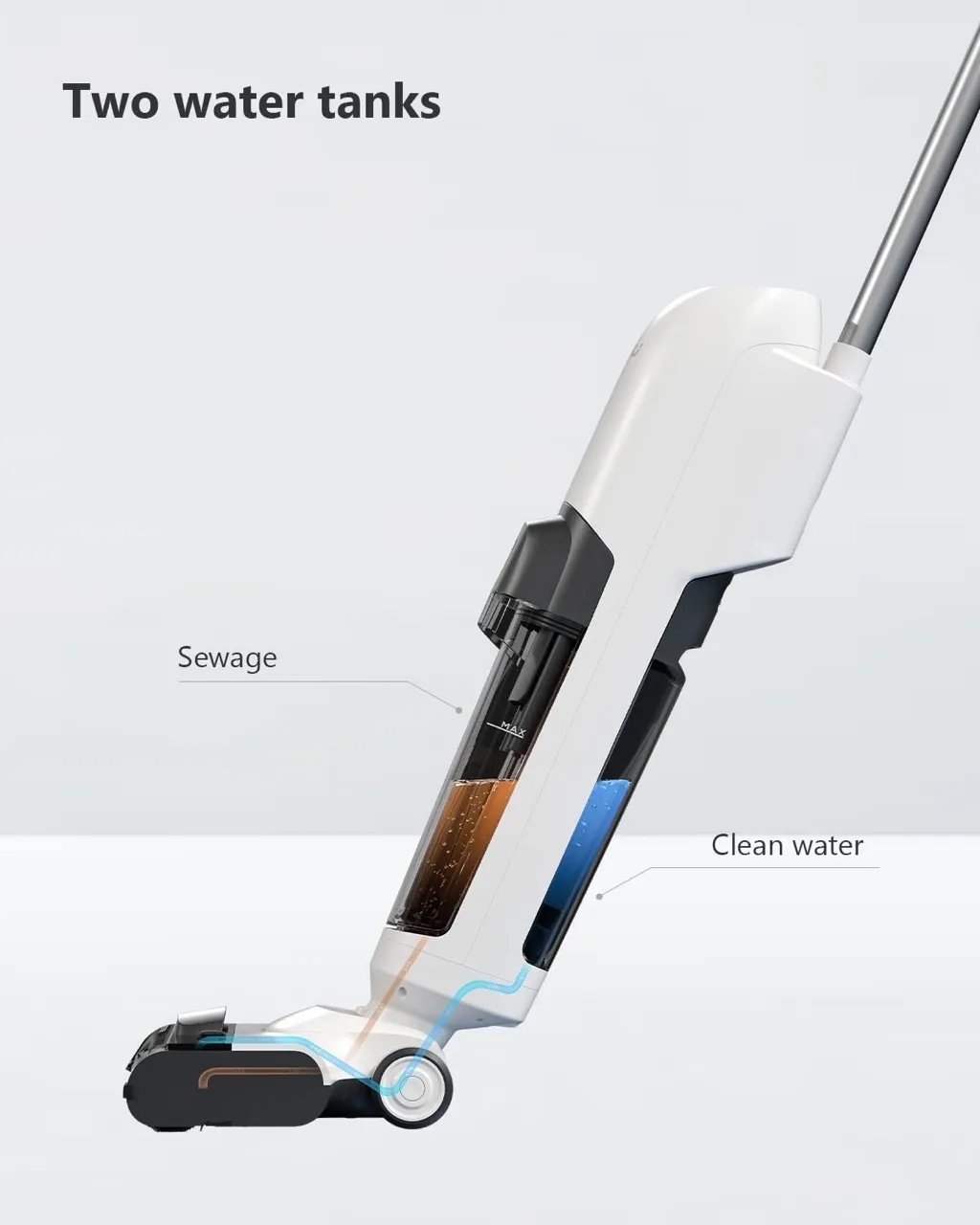 Không cần thêm chất tẩy rửa, nước điện phân sẽ giết chết hầu hết vi khuẩn trên sàn nhà. Đây là một tính năng khá mới được Imou đưa vào cây hút bụi lau nhà SV1 này.Một điểm đáng chú ý của việc làm sạch khử khuẩn nữa đó là khay chứa nước bẩn có phần ngăn cách, giúp lọc các chất rắn ra khỏi nước bẩn, giúp vệ sinh dễ dàng hơn.