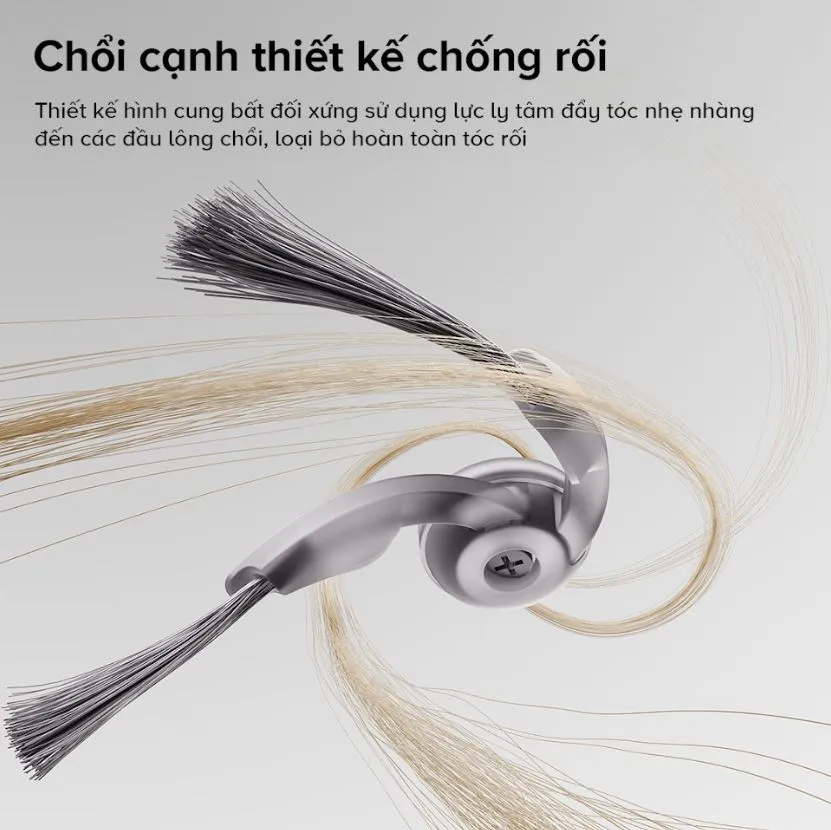 Một điểm cộng lớn cho Roborock Qrevo C Pro chính là khả năng chống rối cực kỳ hiệu quả, đặc biệt hữu ích với các gia đình nuôi thú cưng. Máy được thiết kế với cơ chế chống rối 3 lớp, giúp ngăn tóc, lông và các sợi vải quấn quanh chổi chính. Cấu trúc dẫn hút dạng xoắn kết hợp cơ chế làm sạch chủ động của chổi giúp giảm thiểu tình trạng kẹt tóc, giảm thiểu việc phải vệ sinh thủ công. Sự kết hợp hoàn hảo giữa thiết kế cơ học và xử lý thuật toán khiến robot hoạt động trơn tru hơn, ổn định hơn trong mọi điều kiện.