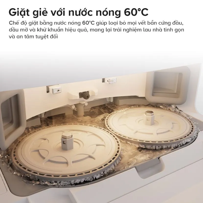 Sau mỗi lần lau, giẻ được robot quay về dock và tự động giặt bằng nước nóng 60 độ C, giúp loại bỏ vi khuẩn, mùi hôi và giữ giẻ luôn sạch sẽ. Khác với nhiều dòng máy lau nhà tự động khác chỉ rửa giẻ bằng nước lạnh, Qrevo C Pro đảm bảo hiệu quả vệ sinh tối đa cho môi trường sống trong lành.