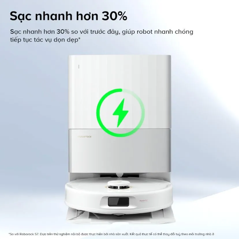 Qrevo C Pro còn được nâng cấp với công nghệ sạc nhanh, giúp nạp đầy pin nhanh hơn 30% so với các dòng robot đời cũ. Điều này giảm thời gian nghỉ giữa các phiên làm sạch, giúp máy quay trở lại công việc sớm hơn.