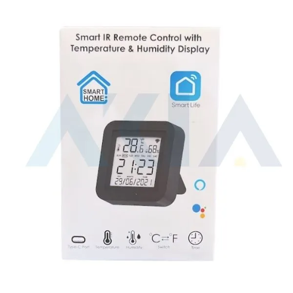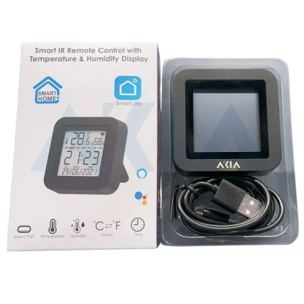 Bên cạnh đó, điểm đặc biệt khiến AKIA-S09 nổi bật so với các dòng điều khiển IR khác chính là màn hình LCD tích hợp hiển thị giờ, ngày, nhiệt độ và độ ẩm thực tế, giúp người dùng theo dõi tình trạng môi trường phòng một cách trực quan.