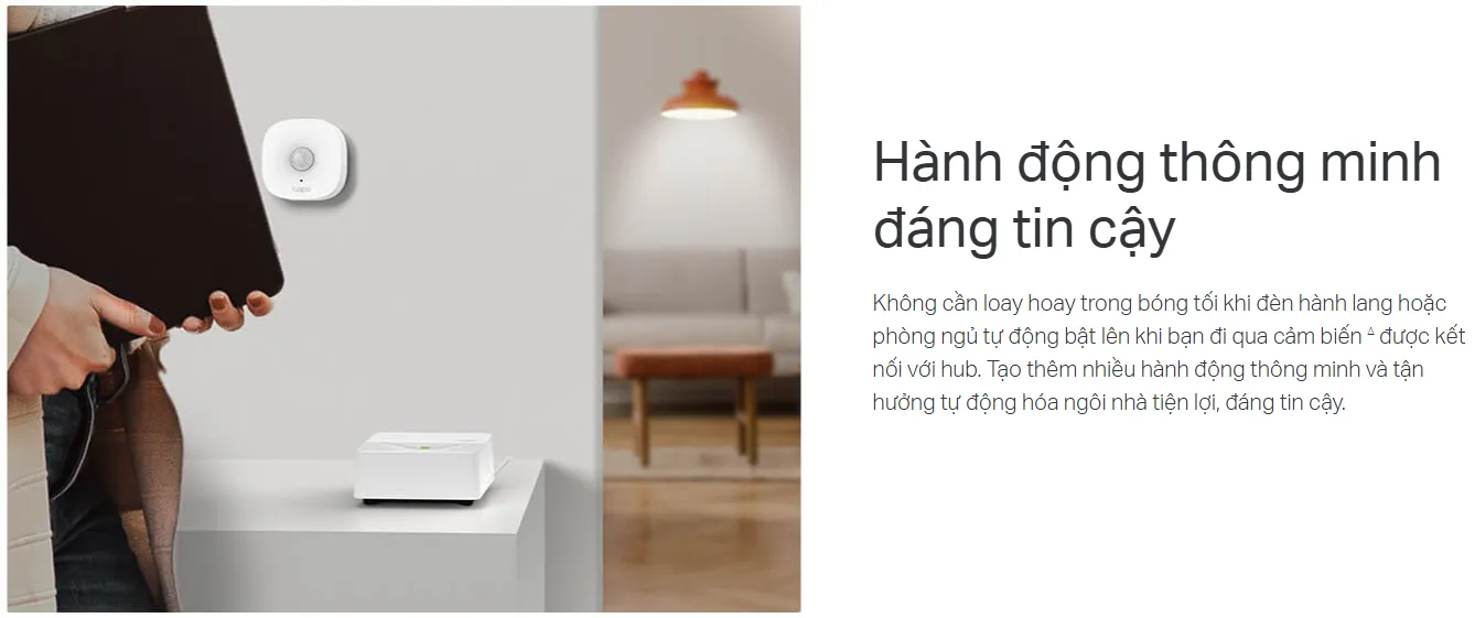 - Tự động bật/tắt đèn: Kết hợp với cảm biến chuyển động, Tapo Hub H200 có thể tự động bật đèn khi bạn bước vào phòng hoặc khi phát hiện chuyển động vào ban đêm.