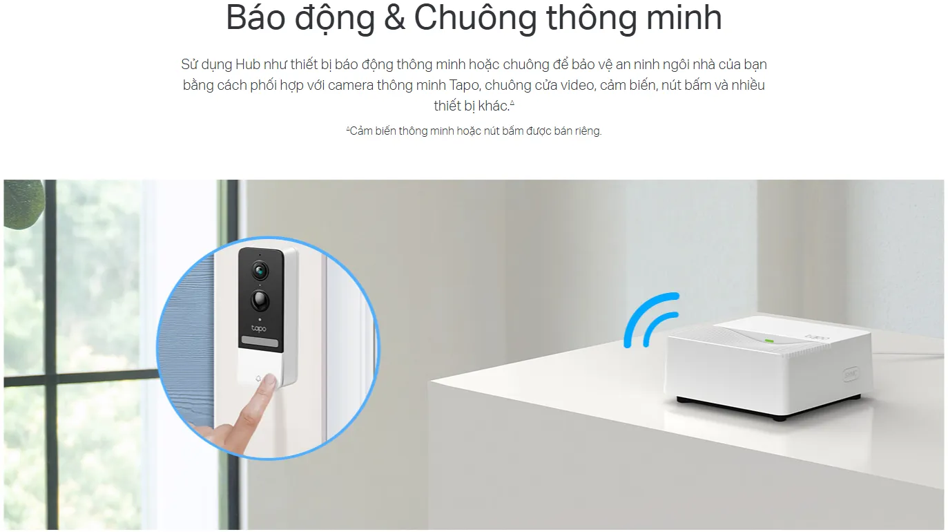 Bộ điều khiển thông minh Tapo Hub H200 không chỉ là một trung tâm kết nối, mà còn là một phần tử quan trọng trong hệ thống an ninh của ngôi nhà. Thiết bị tích hợp một chuông báo động thông minh với cường độ lên đến 90 dB. Chuông này có thể được kích hoạt tự động bởi các cảm biến Tapo (ví dụ: cảm biến cửa mở khi bạn không ở nhà, hoặc cảm biến chuyển động phát hiện đột nhập).