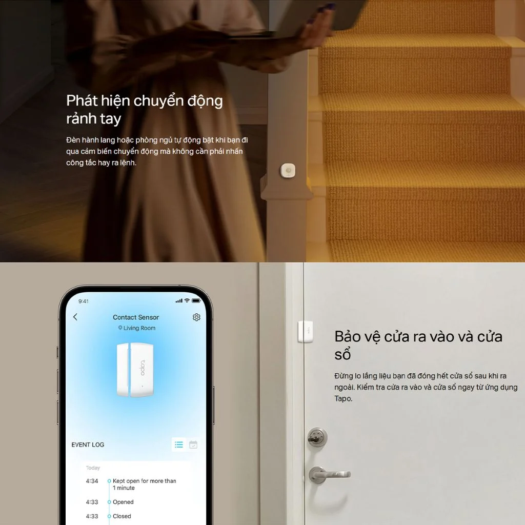 - Kết hợp với camera Tapo, khi một cảm biến phát hiện hoạt động, camera có thể tự động kích hoạt chế độ tuần tra và ghi hình lại sự kiện, cung cấp bằng chứng quan trọng.
