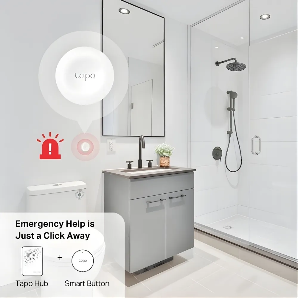 Công tắc không dây Tapo S200B không chỉ dừng lại ở việc điều khiển tiện ích mà còn là một thiết bị hỗ trợ an ninh đáng tin cậy. Với tính năng báo động một lần chạm, các thành viên trong gia đình có thể sử dụng thiết bị để yêu cầu sự trợ giúp khẩn cấp khi cần thiết. Vị trí lắp đặt linh hoạt, dễ dàng gắn gần bồn tắm, nhà vệ sinh hoặc cạnh giường, đảm bảo thiết bị luôn trong tầm với khi có sự cố.