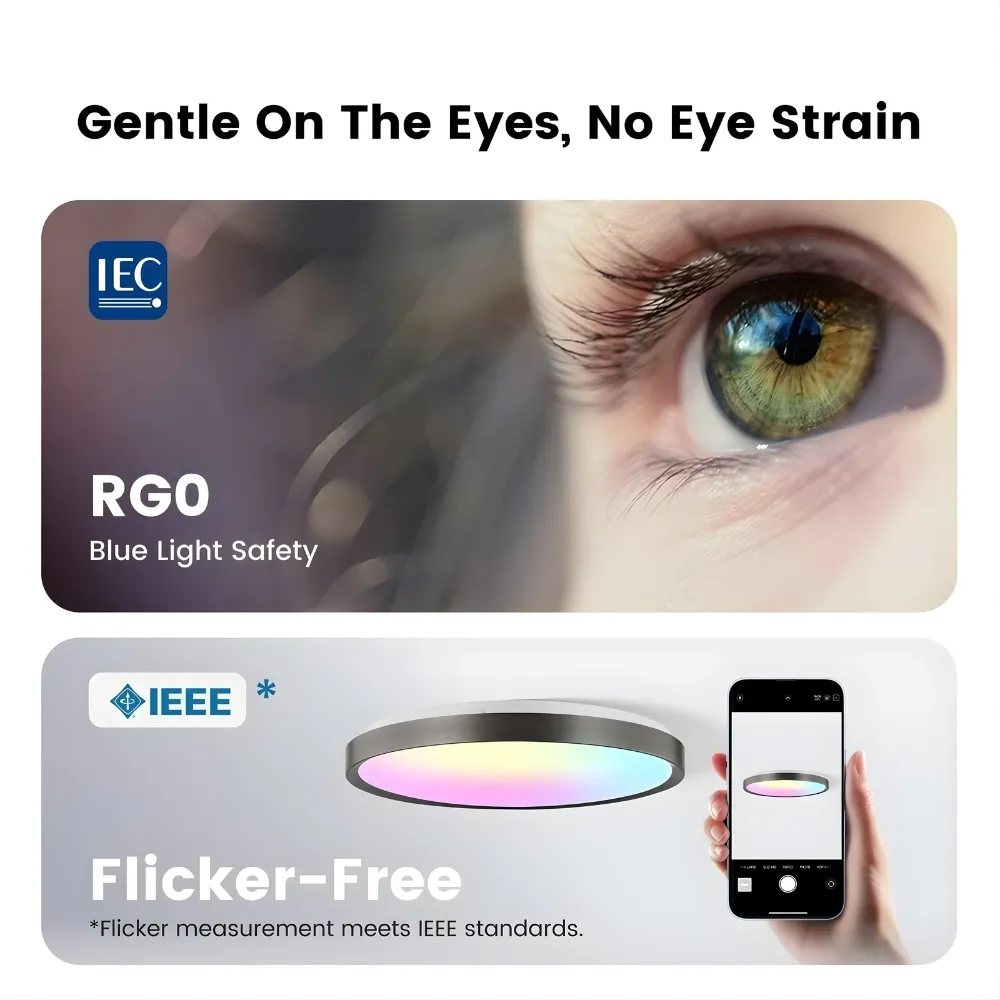 Đèn ốp trần Yeelight RGB Jupiter D C500 định nghĩa lại trải nghiệm ánh sáng với dải màu RGB 16 triệu màu phong phú. Từ ánh sáng trắng ấm áp (2700K) cho những buổi tối thư giãn, ánh sáng ban ngày mát mẻ (6500K) cho không gian làm việc hiệu quả, đến vô vàn sắc thái màu sắc để tạo nên không khí lễ hội, lãng mạn hay sôi động. Với chỉ số hoàn màu Ra95, mọi vật thể dưới ánh sáng của Jupiter D500 đều hiển thị chân thực và sống động.
