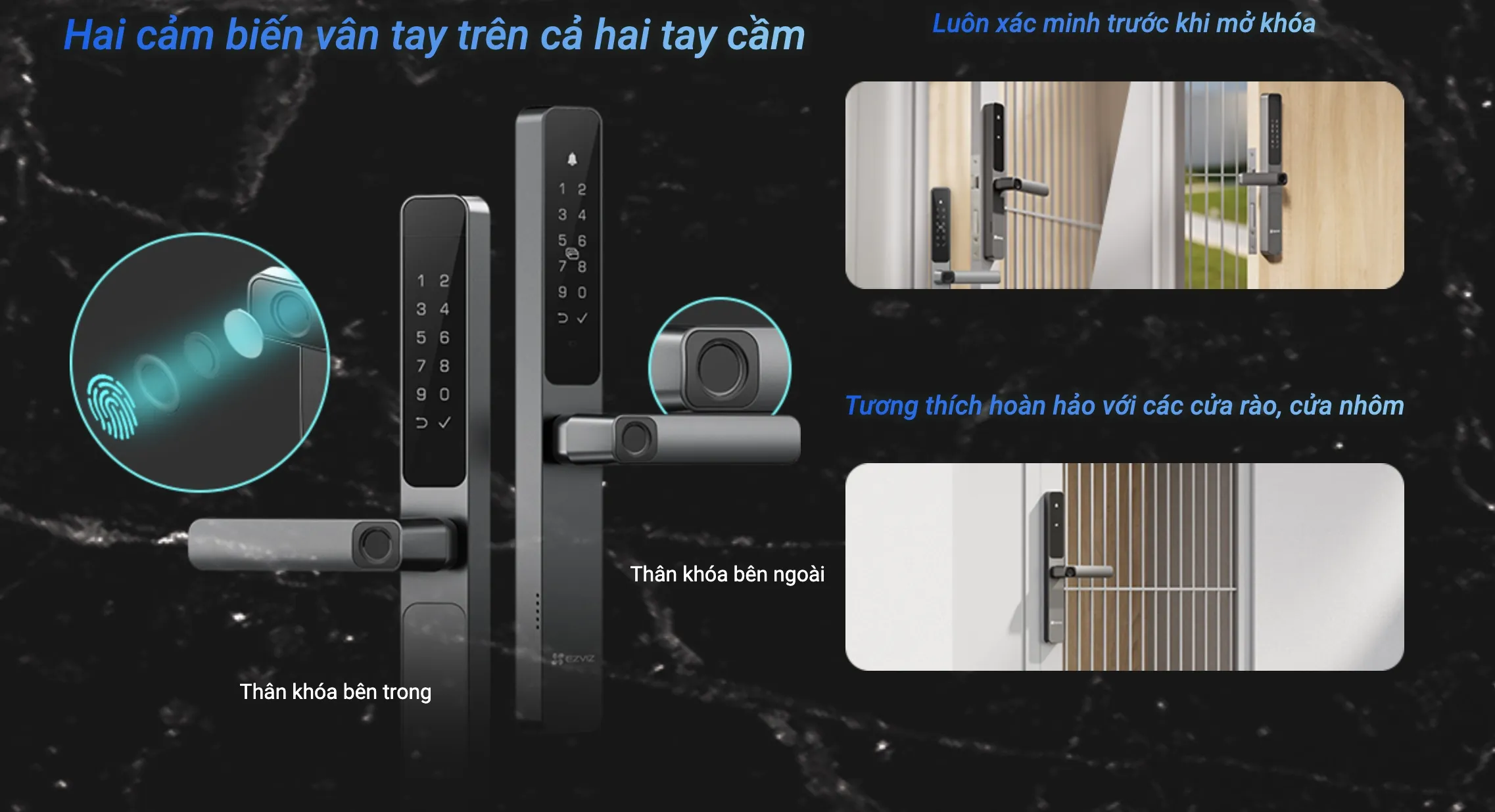 Ezviz DL06 Pro là khoá vân tay 2 mặt chuyên dụng cho cửa nhôm, cửa nhôm kính, mang lại giải pháp bảo mật thông minh và tiện lợi. Thiết kế hiện đại, sang trọng, phù hợp cho gia đình, văn phòng hoặc cửa hàng.